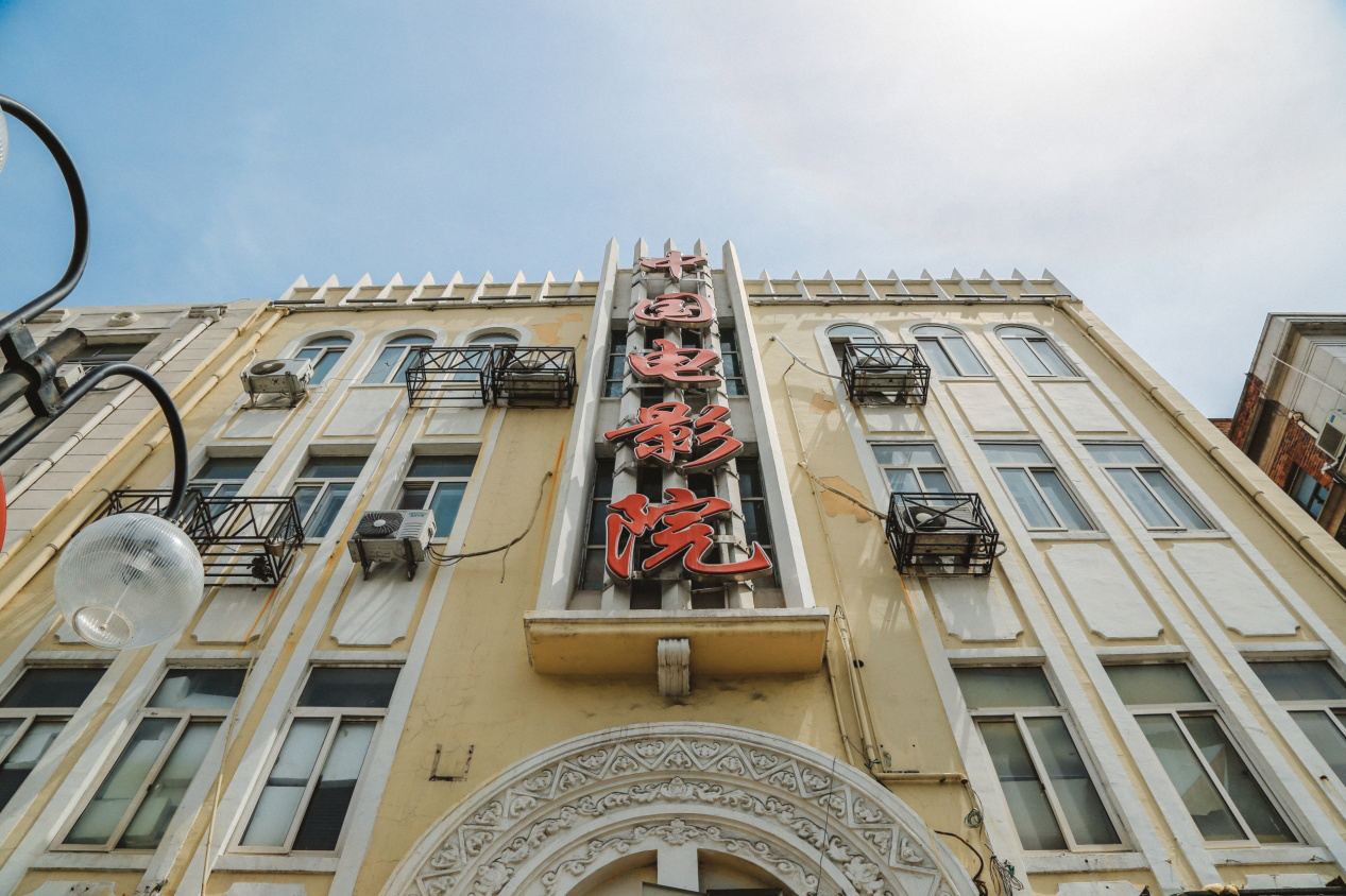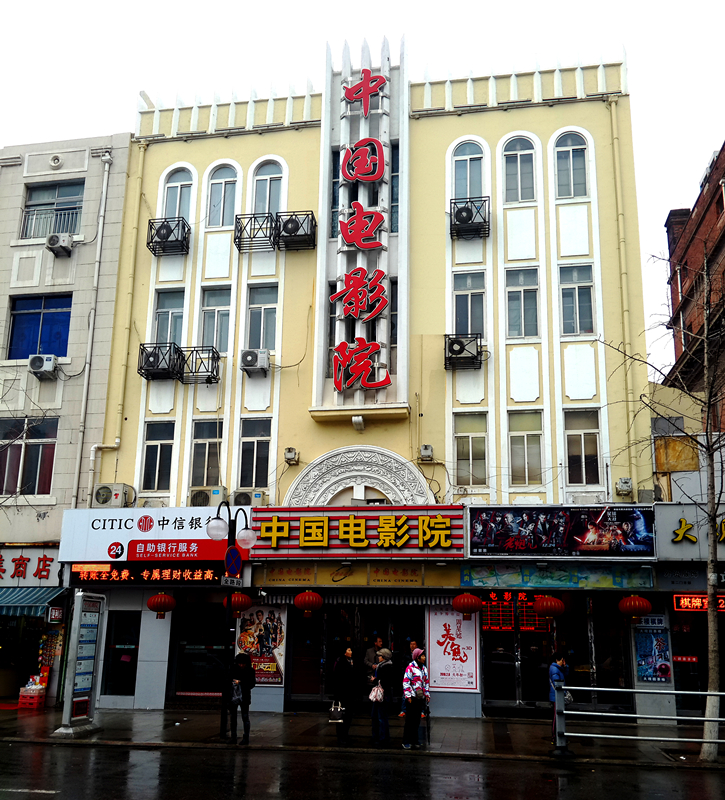 山東大戲院舊址,位于市南區(qū)中山路97號,建筑面積551.88平方米。鋼混結(jié)構(gòu),坐北朝南。地上四層,有閣樓及地下室。黃色抹灰外墻,紅色坡屋頂,花崗巖基石砌基,拉毛墻面,平屋頂。主立面西向,一層為虛廊,入內(nèi)沿踏步至戲院前廳,兩側(cè)有走道樓梯可達(dá)二層觀眾席。建筑平面呈矩形。中軸線式布局,左右三、四層備有三組圓拱形豎窗。檐口女兒墻并排做棱角式裝飾。