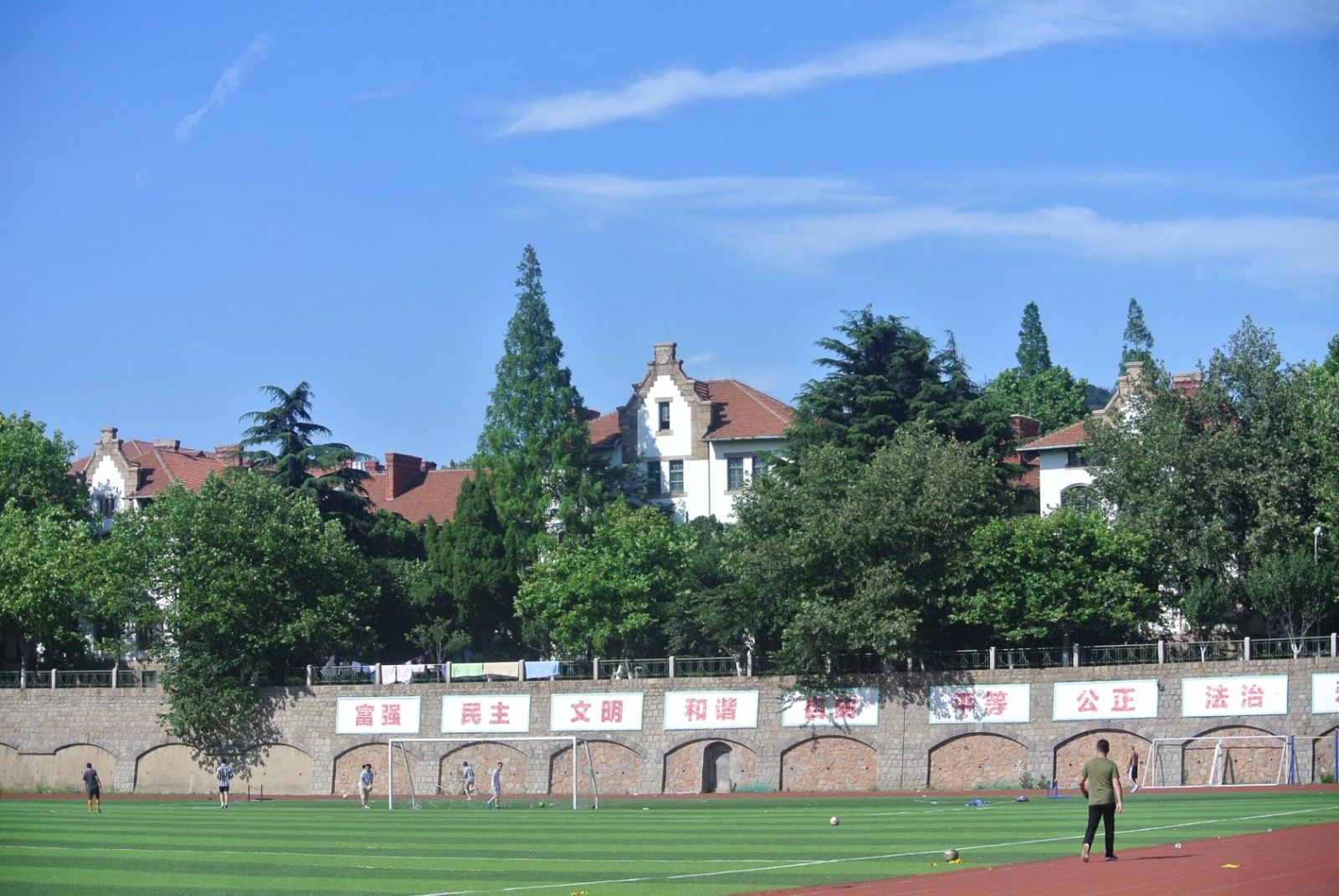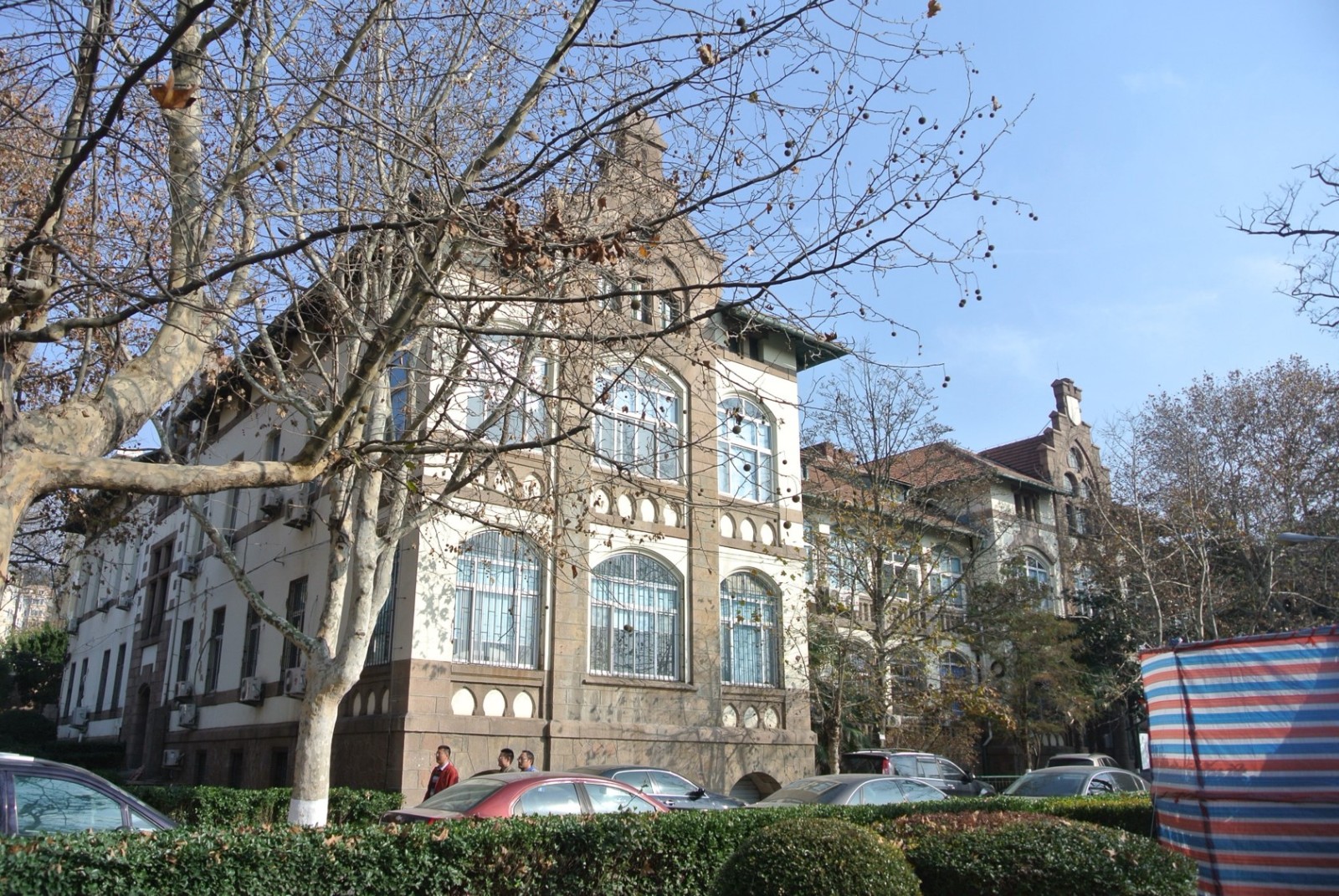 俾斯麥兵營舊址,位于市南區(qū)魚山路5號中國海洋大學(xué)院內(nèi)。共四座樓,建筑設(shè)計(jì)基本一致。德國三段式,有地下室和閣樓,花崗巖墻基,折坡屋面,正立面窗戶很大,多為拱形。山墻上有“矛”和“盾”的標(biāo)志。德軍在原清代章高元部兵營基礎(chǔ)上擴(kuò)建的兵營,是一個(gè)巨大的建筑群落,四座營房建筑的平面分別呈H型,共同圍成一練兵場,是開敞性的新哥特式建筑,此建筑是德軍在青島修建的第一座兵營,也是最重要的一座兵營,是膠澳司令部駐地。德軍戰(zhàn)敗投降后,兵營為日軍占用,更名為萬年兵營。1922年中國收回青島后,為中國陸軍第5師第40旅駐地。1924年在此設(shè)置青島大學(xué),目前此處建筑均為中國海洋大學(xué)所有。